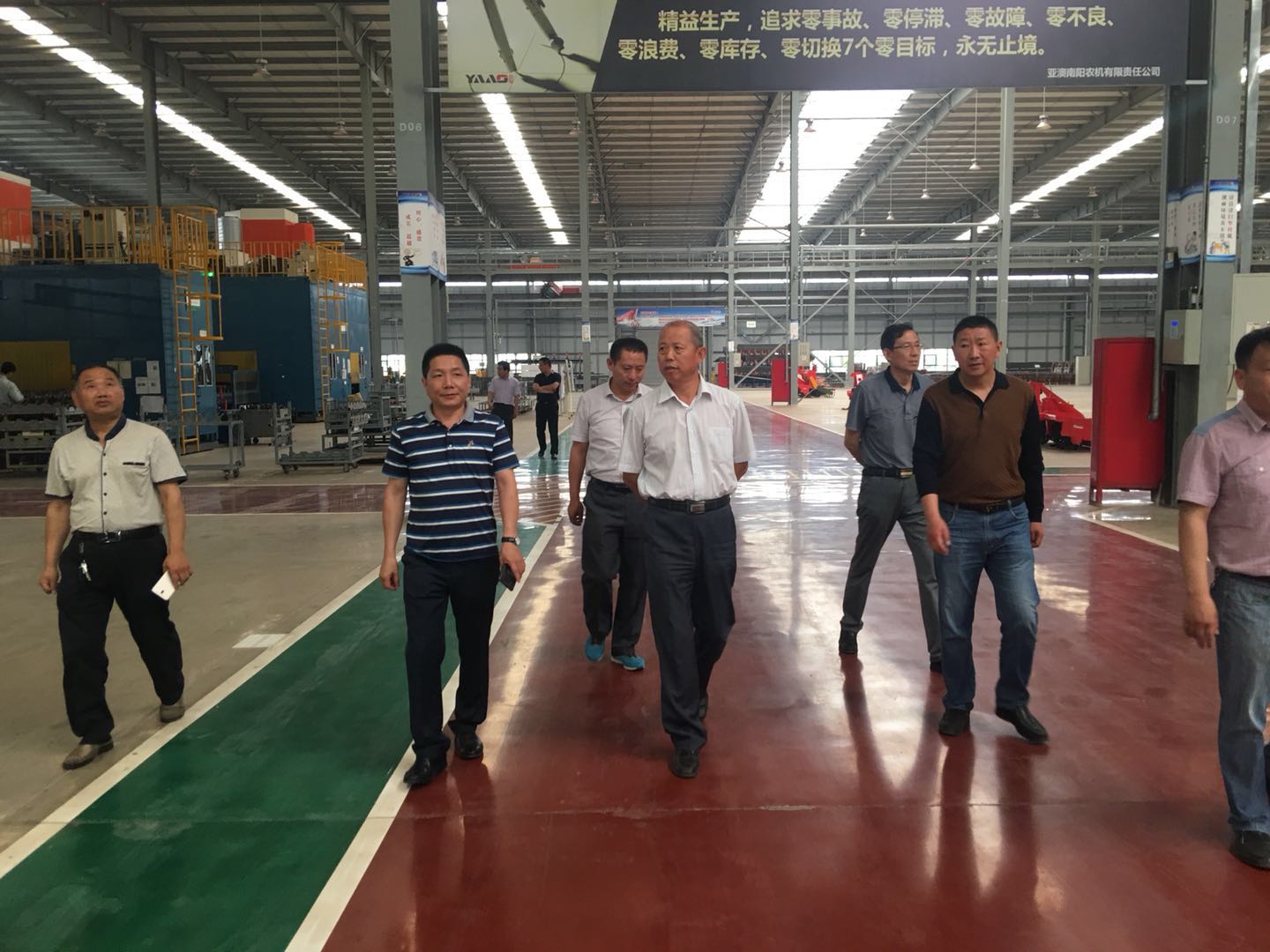 2018年5月29日上午,河南省農機局副巡視員程雙進在南陽市農機局劉勤局長、縣農機局、縣產業(yè)集聚區(qū)領導陪同下蒞臨亞澳視察亞澳農機智能制造項目發(fā)展建設情況。
