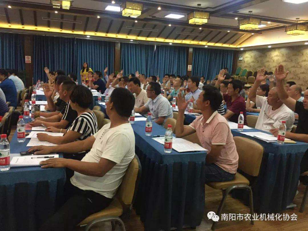 7月3日,南陽(yáng)市農(nóng)業(yè)機(jī)械化協(xié)會(huì)成立大會(huì)在南陽(yáng)市鷗凱印象酒店3樓會(huì)議室召開(kāi),南陽(yáng)市農(nóng)業(yè)機(jī)械化管理局黨組書(shū)記、局長(zhǎng)劉勤同志出席會(huì)議并做重要講話。選舉通過(guò)田云鎖(原南陽(yáng)市農(nóng)業(yè)機(jī)械公司總經(jīng)理)同志當(dāng)選為會(huì)長(zhǎng),亞澳南陽(yáng)農(nóng)機(jī)有限責(zé)任公司總經(jīng)理史炳哲、南陽(yáng)奇豐機(jī)械有限責(zé)任公司董事長(zhǎng)趙順奇、鎮(zhèn)平縣糧豐農(nóng)機(jī)農(nóng)民專業(yè)合作社理事長(zhǎng)薛云濤當(dāng)選為副會(huì)長(zhǎng)。
