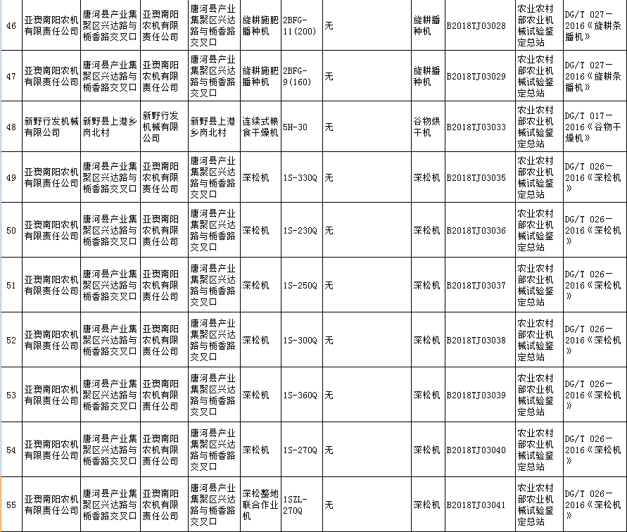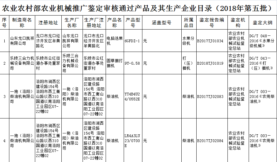 根據(jù)農(nóng)業(yè)部農(nóng)業(yè)機械試驗鑒定總站2018年第五批部級農(nóng)機推廣鑒定結(jié)果的公示,9個型號的機型全部通過農(nóng)機鑒定總站的批準(zhǔn)。