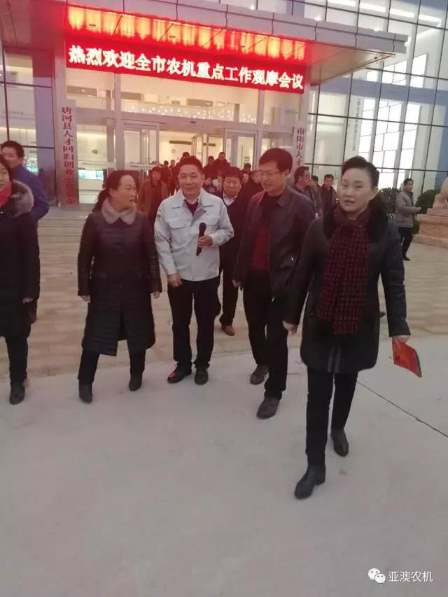 2017年12月13日,南陽(yáng)市農(nóng)機(jī)局劉勤局長(zhǎng)在縣政府馬俊宏副縣長(zhǎng)、縣農(nóng)機(jī)局張凌局長(zhǎng)陪同下帶領(lǐng)參加全市農(nóng)機(jī)重點(diǎn)工作的市、各縣農(nóng)機(jī)系統(tǒng)領(lǐng)導(dǎo)及各縣屬專(zhuān)業(yè)農(nóng)機(jī)合作社人員,來(lái)到亞澳農(nóng)機(jī)觀摩指導(dǎo)。