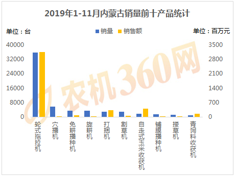 不論是從銷量還是銷售額方面,均可以看出輪式拖拉機(jī)在內(nèi)蒙古地區(qū)農(nóng)機(jī)產(chǎn)品中占有重要的地位。
